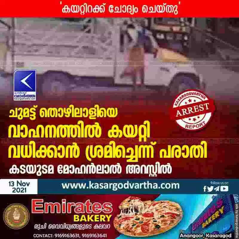 ചുമട്ട് തൊഴിലാളിയെ വാഹനത്തിൽ കയറ്റി വധിക്കാൻ ശ്രമിച്ചെന്ന് പരാതി; കടയുടമ മോഹൻലാൽ അറസ്റ്റിൽ