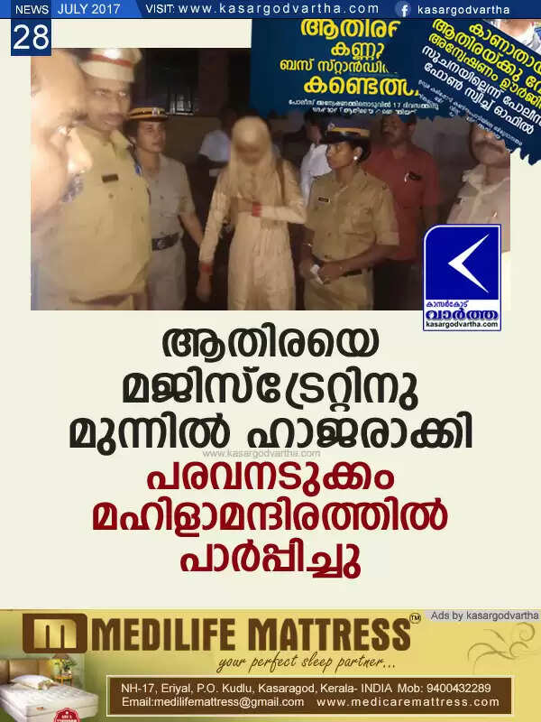 ആതിരയെ മജിസ്ട്രേറ്റിനു മുന്നില് ഹാജരാക്കി; പരവനടുക്കം മഹിളാമന്ദിരത്തില് പാര്പ്പിച്ചു