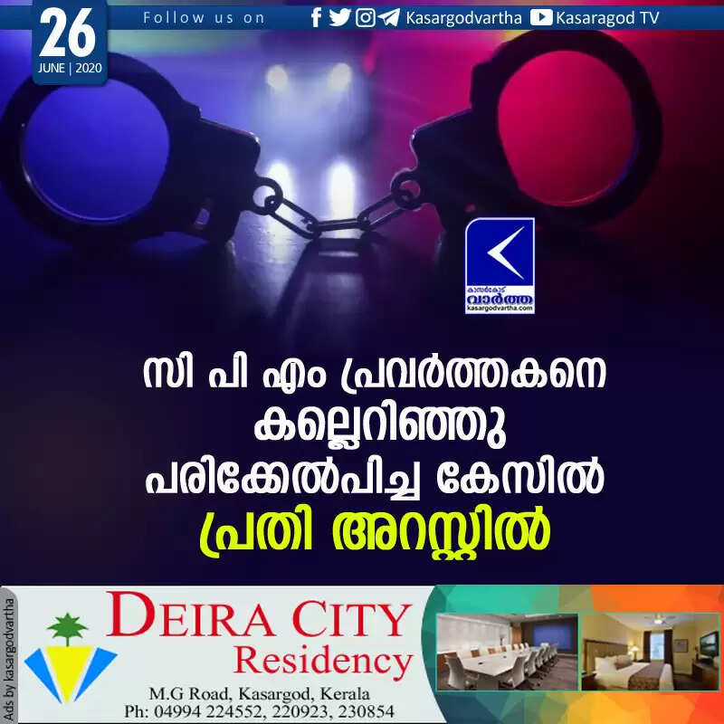 സി പി എം പ്രവര്ത്തകനെ കല്ലെറിഞ്ഞു പരിക്കേല്പിച്ച കേസില് പ്രതി അറസ്റ്റില്