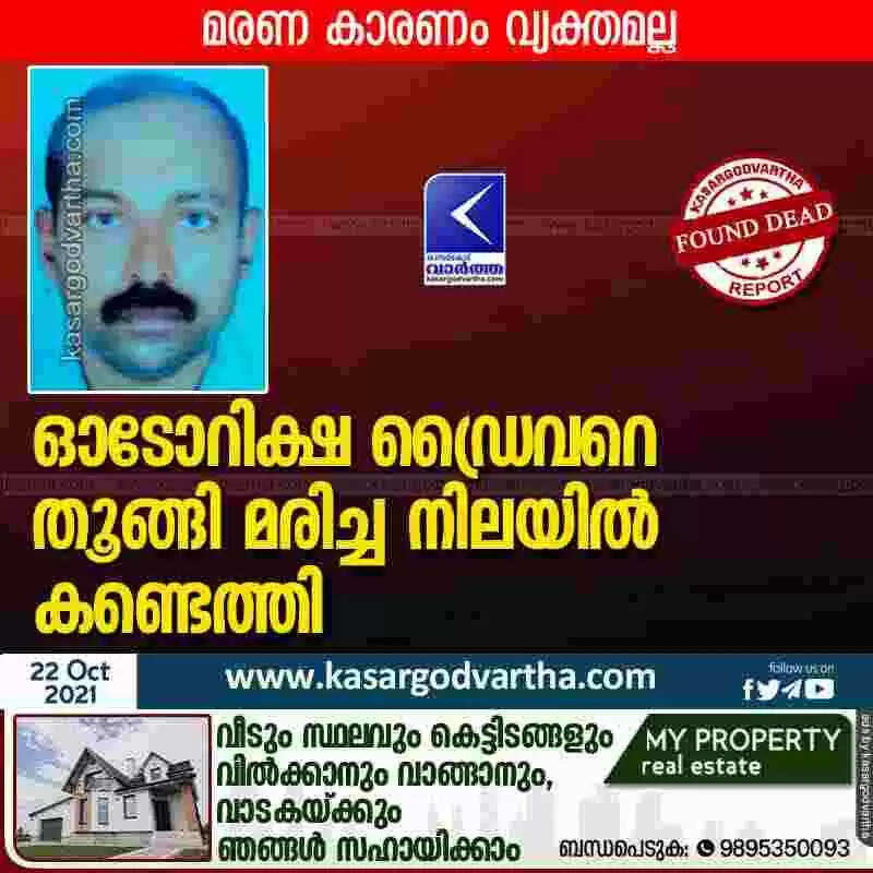 ഓടോറിക്ഷ ഡ്രൈവറെ തൂങ്ങി മരിച്ച നിലയിൽ കണ്ടെത്തി