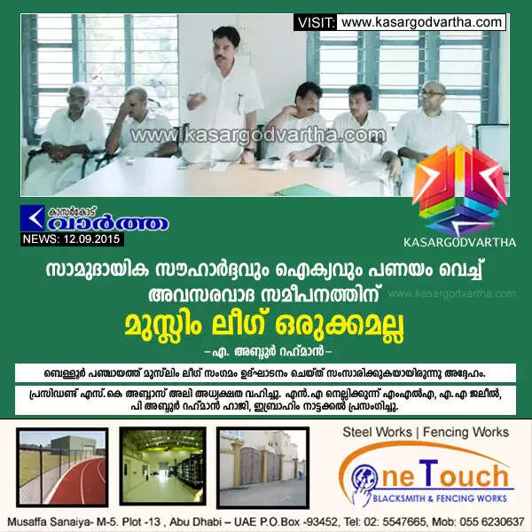 Keywords: Kasaragod, Kerala, Bellur, Muslim-league, N.A.Nellikunnu, inauguration, A. Abdul Rahman, Bellur Panchayath Muslim League meet.