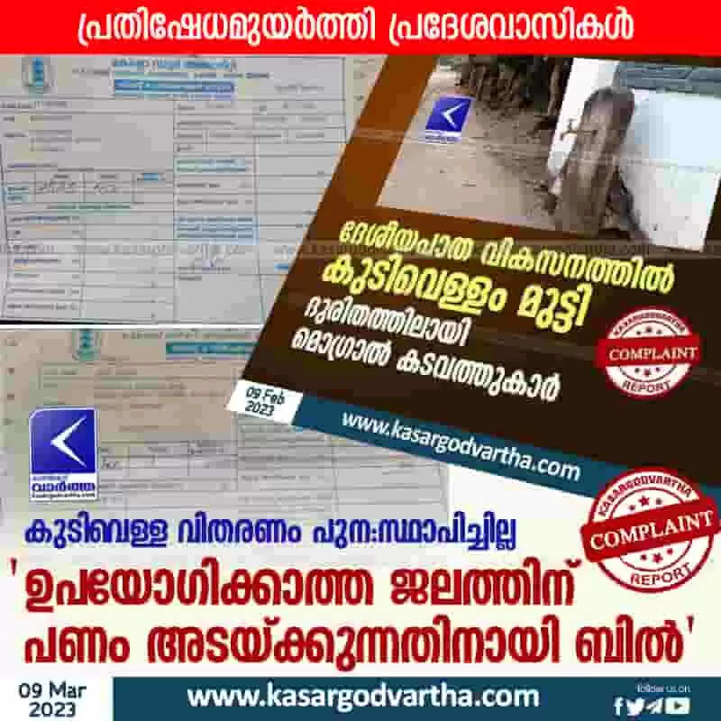 Keywords: Latest-News, Kerala, Kasaragod, Mogral, Top-Headlines, Water Authority, Drinking Water, Government, Controversy, Complaint, Public-Demand, Bill to pay for unused water.