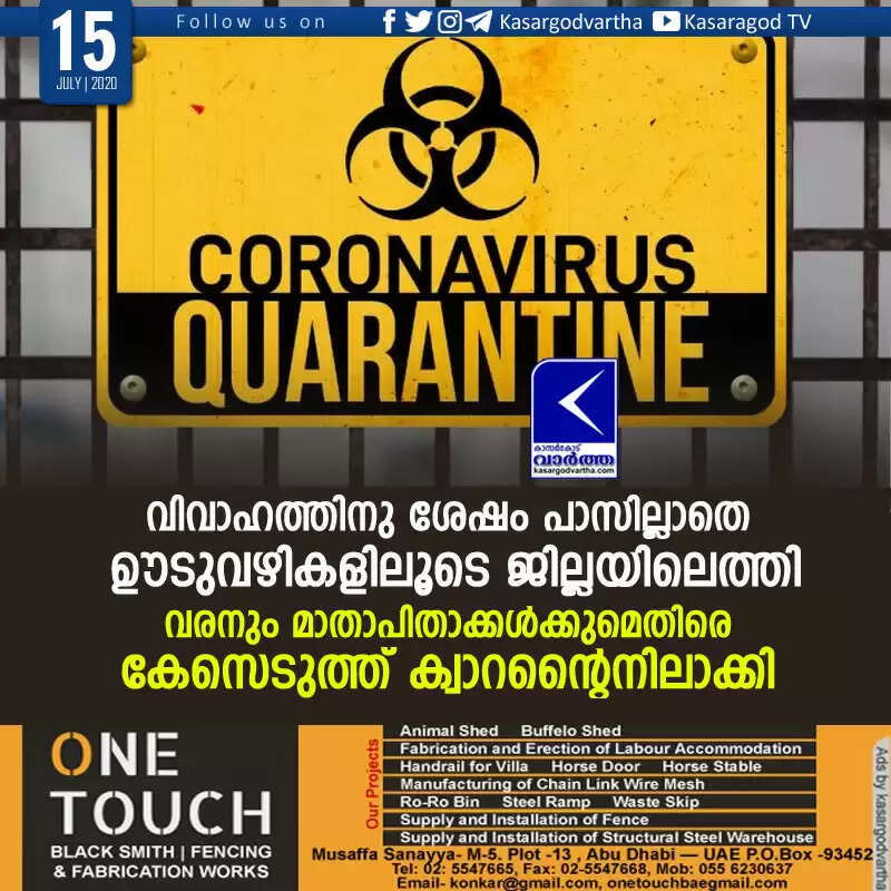 Keywords: Adoor, News, Kasaragod, Kerala, Marriage, Case, Case against the groom and his parents violating rule and was quarantined