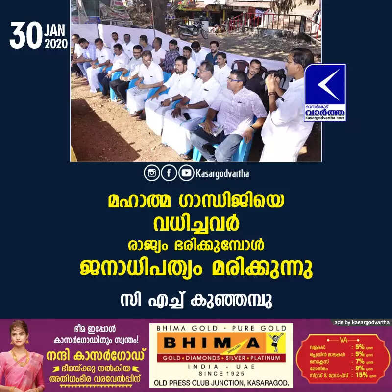 Keywords: Kasaragod, Kerala, news, Government, Mahatma-Gandhi, Murder, CH Kunhambu against Central Govt. < !- START disable copy paste -->