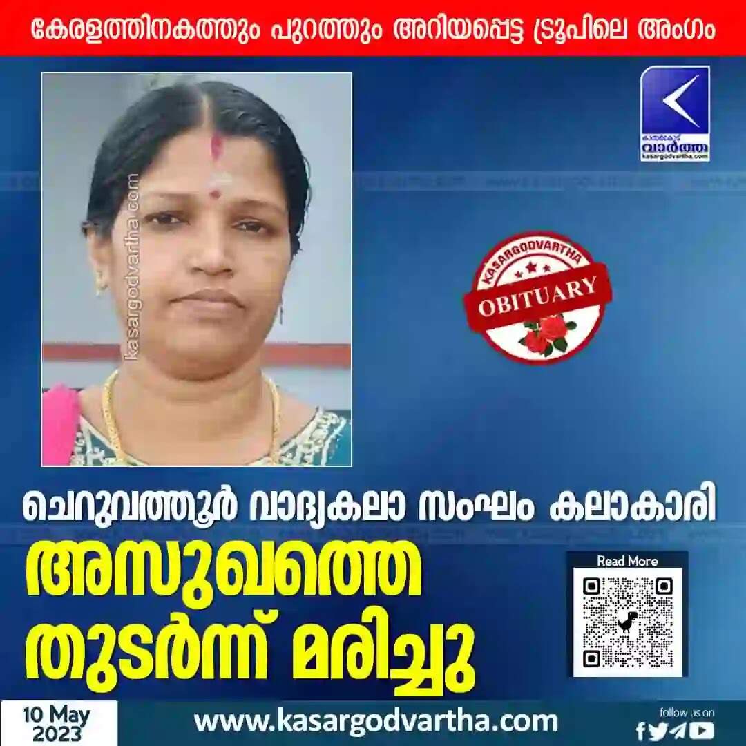 Obituary | ചെറുവത്തൂര്‍ വാദ്യകലാ സംഘം കലാകാരി അസുഖത്തെ തുടര്‍ന്ന് മരിച്ചു