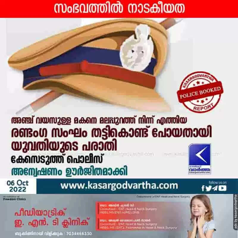 Keywords: Child abduction complaint; Two booked, Kerala,Kasaragod,news,Top-Headlines,Police,complaint,case,Investigation,Malappuram.