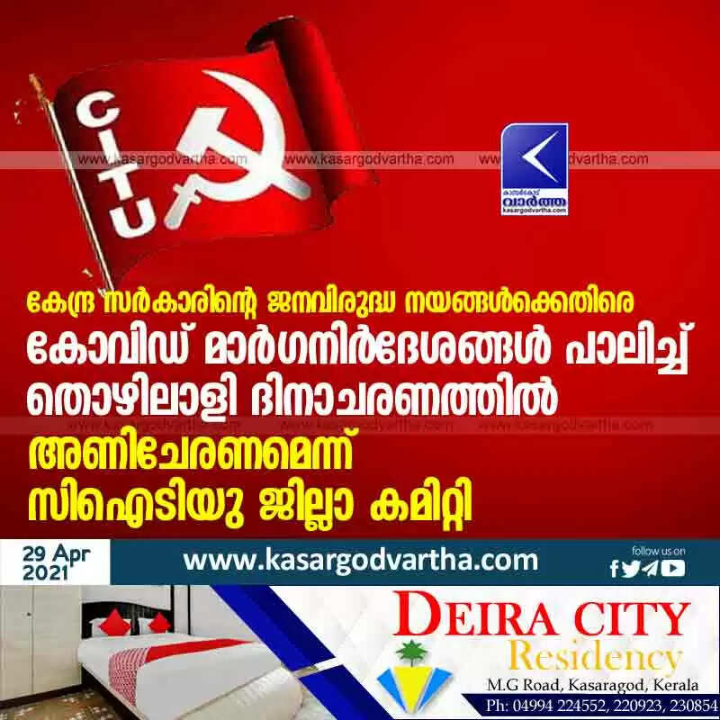 Keywords: Kasaragod, Kerala, News, Government, CITU, District, COVID-19, Worker, Secretary, CITU district committee urges workers to celebrate Labor Day by following Covid's guidelines against the anti-people policies of the Central Government.