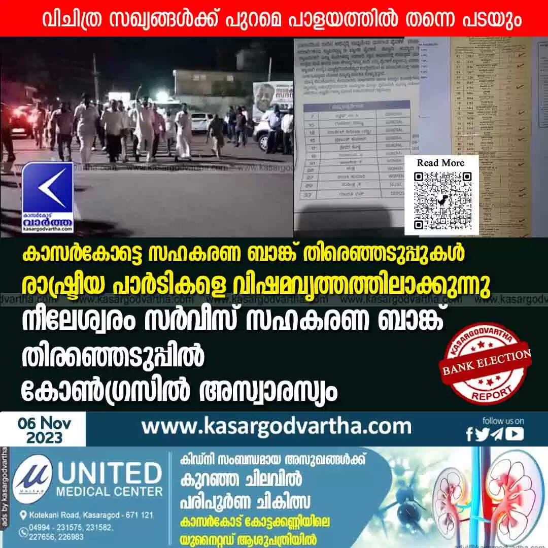 Bank elections | കാസർകോട്ടെ സഹകരണ ബാങ്ക് തിരെഞ്ഞടുപ്പുകൾ രാഷ്ട്രീയ പാർടികളെ വിഷമവൃത്തത്തിലാക്കുന്നു; നീലേശ്വരം സർവീസ് സഹകരണ ബാങ്ക് തിരഞ്ഞെടുപ്പിൽ കോൺഗ്രസിൽ അസ്വാരസ്യം