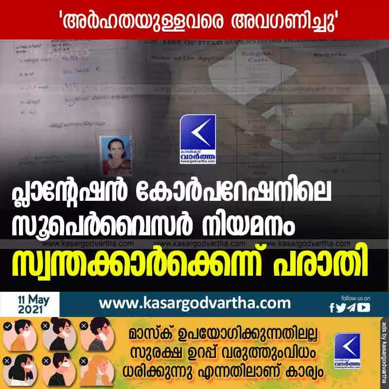 പ്ലാൻ്റേഷൻ കോർപറേഷനിലെ സൂപെർവൈസർ നിയമനം സ്വന്തക്കാർക്കെന്ന് പരാതി