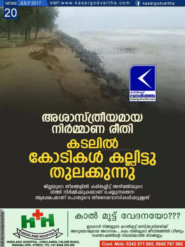 Keywords: Kasaragod, Kerala, Kumbala, news, Complaint against sea wall construction