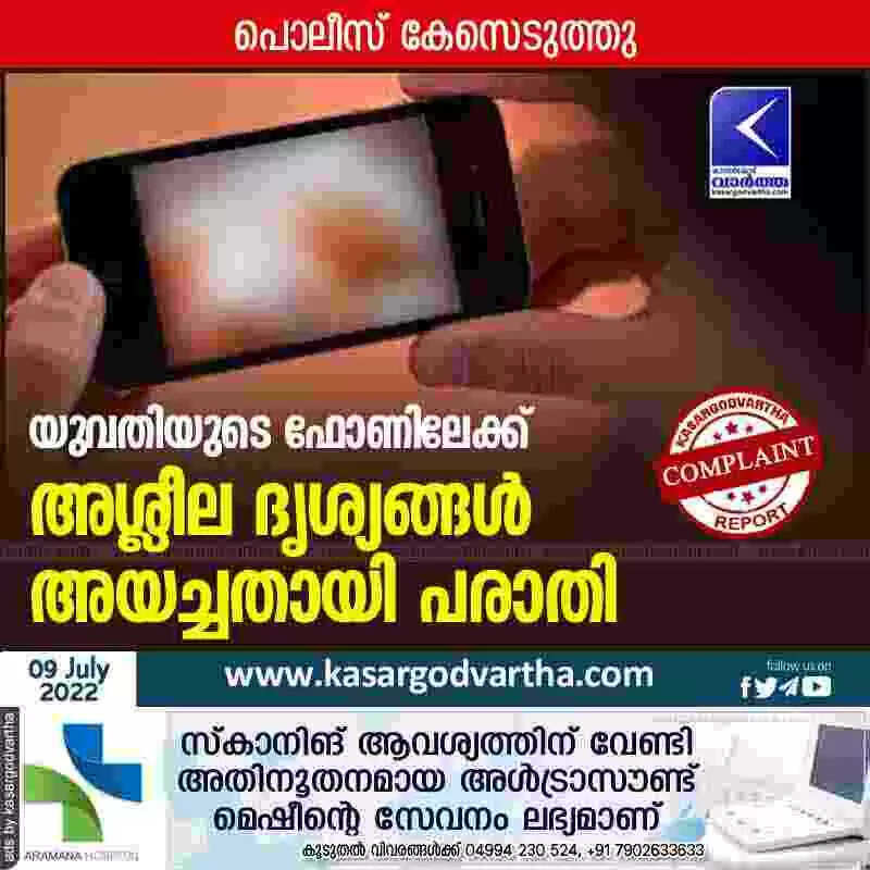 Obscene videos | യുവതിയുടെ ഫോണിലേക്ക് അശ്ലീല ദൃശ്യങ്ങൾ അയച്ചതായി പരാതി; പൊലീസ് കേസെടുത്തു