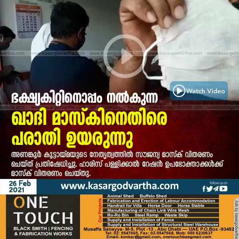 Keywords:  Kasaragod, Kerala, News, Top-Headlines, Ration Shop, Food, Mask, Complaint, Complaints are being raised against the khadi mask provided with the food kit.