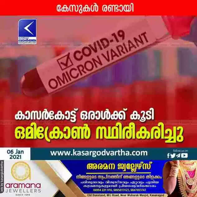 കാസർകോട്ട് ഒരാൾക്ക് കൂടി ഒമിക്രോണ് സ്ഥിരീകരിച്ചു; കേസുകൾ രണ്ടായി