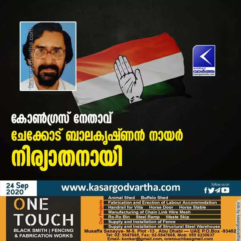 Keywords:  Kerala, News, Death, Congress, Leader, Muliyar, Treatment, Hospital, Kasaragod, Congress leader Chekode Balakrishnan Nair passed away.