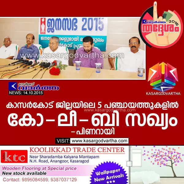 കാസര്കോട് ജില്ലയിലെ 5 പഞ്ചായത്തുകളില് കോ-ലീ-ബി സഖ്യമെന്ന് പിണറായി