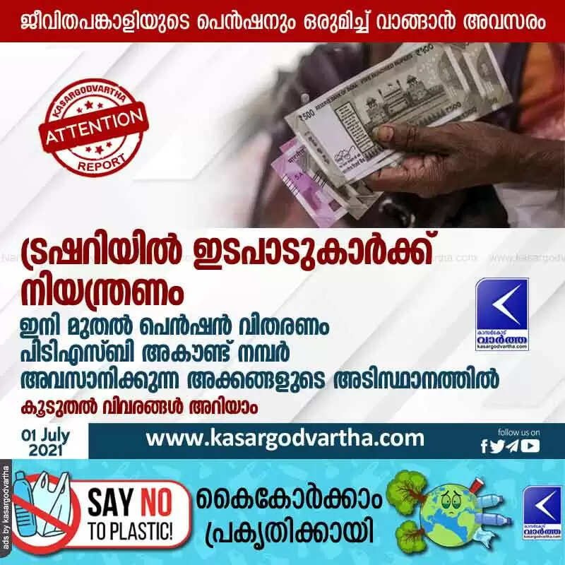 Keywords: News, COVID-19, Pension, Online-registration, Kasaragod, Kerala, District Collector, Control of customers in the treasury; From now on pension will be disbursed on the basis of PTSB account ending numbers.
