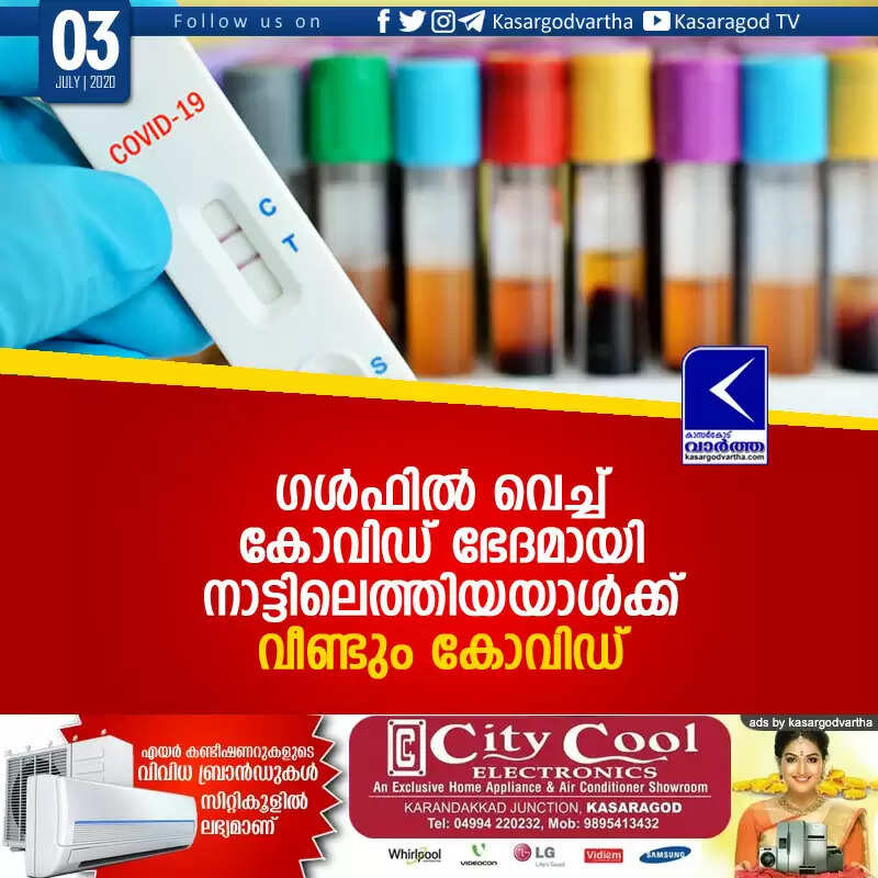 Keywords:  kasaragod, news, Kerala, COVID-19, Treatment, Abudhabi, Covid cured person test positive again