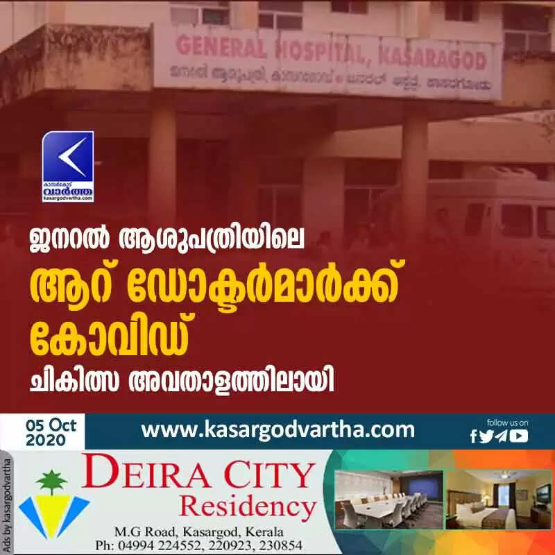 Keywords: Kasaragod, News, Kerala, COVID-19, Treatment, Test, General-hospital, Doctors, COVID to six doctors at General Hospital