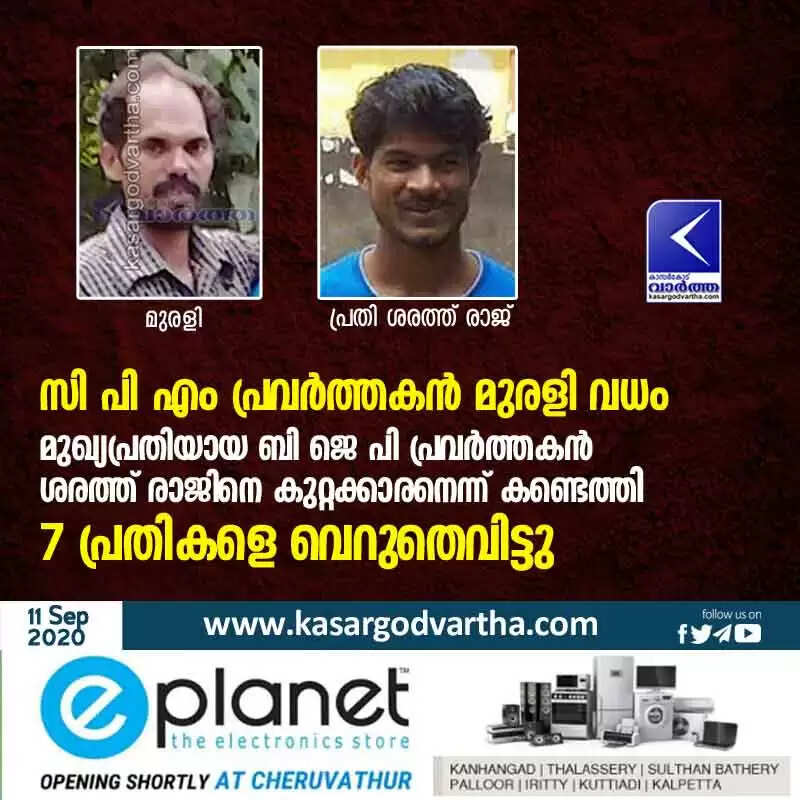 സി പി എം പ്രവർത്തകൻ മുരളി വധം; മുഖ്യപ്രതിയായ ബി ജെ പി പ്രവർത്തകൻ ശരത്ത് രാജിനെ കുറ്റക്കാരനെന്ന് കണ്ടെത്തി; 7 പ്രതികളെ വെറുതെവിട്ടു