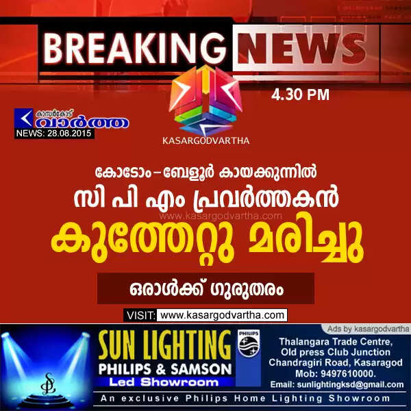 Keywords: Murder, CPM, Harthal, Kasaragod, Kerala, Death, Police, Stabbed, CPM activist stabbed to death.