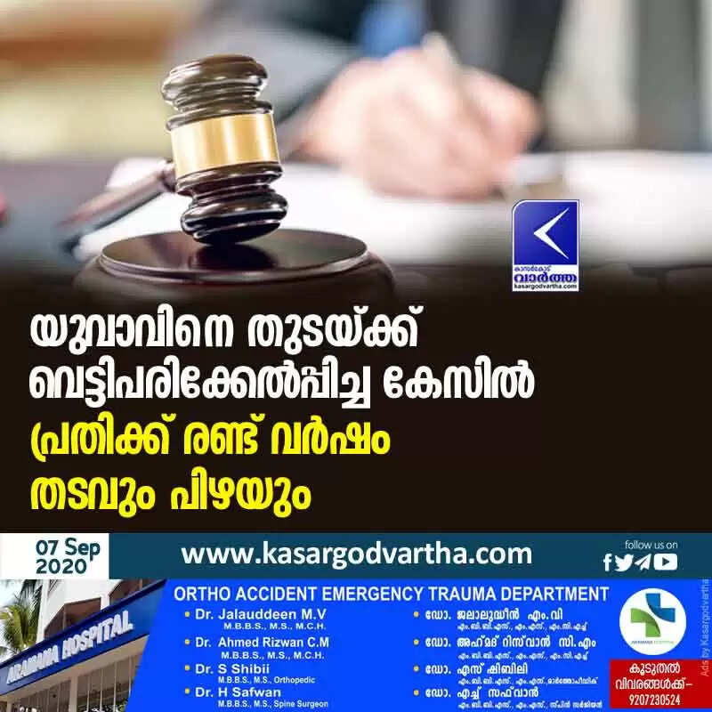 Keywords: Kasaragod, Kerala, News, Youth, Man, Court, Jail, Fine, Defendant sentenced to two years in prison and fined for cutting young man's thigh
