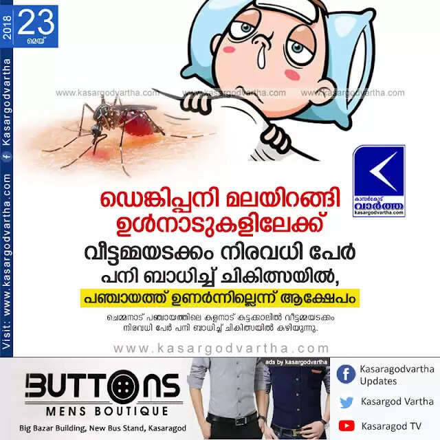 Keywords: Kasaragod, Kerala, news, Kalanad, Treatment, Fever, health, Dengue fever threat in Chemnad Panchayat   < !- START disable copy paste -->