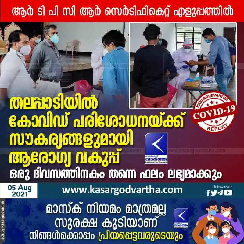 Keywords:  Kerala, kasaragod, Top-Headlines, Thalappady, Karnataka, COVID-19, Health-Department, Mobile Phone, Mangalpady, Hospital, Department of Health with facilities for COVID test at Thalapady. < !- START disable copy paste -->
