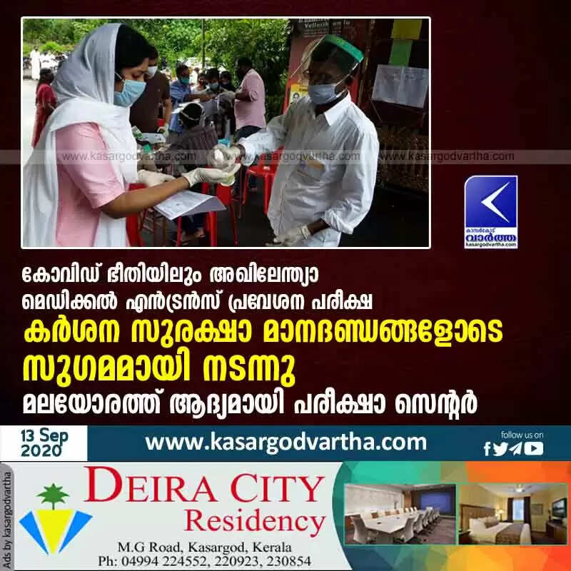Keywords: Kasaragod, Vellarikundu, Kerala, News, Examination, COVID-19, Entrance Exam, Despite the COVID scare, All India Medical Entrance Entrance Examination went smoothly with strict security standards