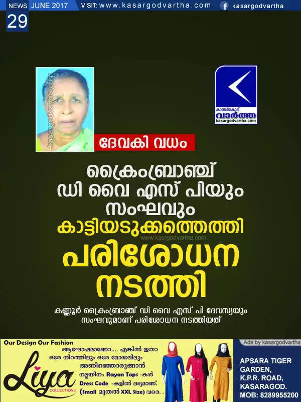 Keywords:  Kasaragod, Kerala, news, Crime branch, Investigation, Murder-case, Devaki murder: Crime branch officers visits Kattiyadukkam