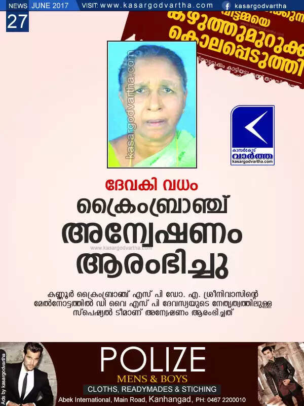 Keywords: Kasaragod, Kerala, news, Death, Murder-case, Crime branch, Investigation, Devaki murder; Crime branch investigation started
