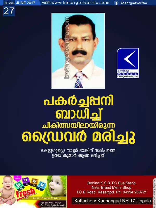 Keywords: Kasaragod, Kerala, Death, Fever, news, hospital, Treatment, Driver dies after fever