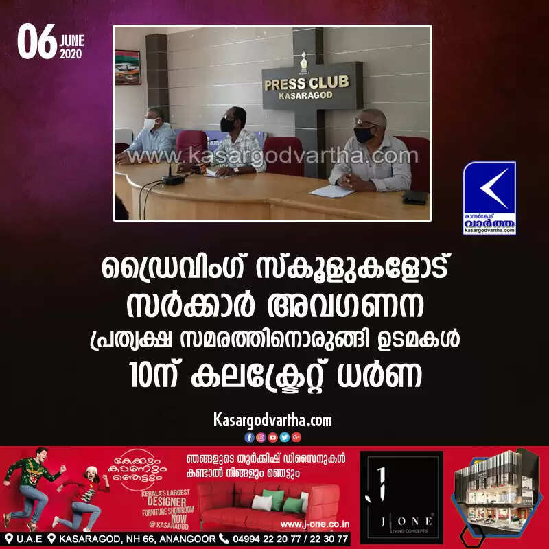 കാസര്‍കോട്: (www.kasargodvartha.com 06.06.2020) കോവിഡ് -19ന്റെ വ്യാപനത്തിന്റെ പശ്ചാത്തലത്തില്‍ മാര്‍ച്ച് 23 മുതല്‍ സര്‍ക്കാര്‍ ലോക് ഡൗണ്‍ പ്രഖ്യാപിച്ചതിനാല്‍ ശരിക്കും ലോക്കായത് ആയിരക്കണക്കിന് വരുന്ന ഡ്രൈവിംഗ് സ്‌കൂള്‍ ഉടമകളുടെയും ജീവനക്കാരുടെയും ജീവിതമാണെന്ന് ഓള്‍ കേരള മോട്ടോര്‍ ഡ്രൈവിംഗ് സ്‌കൂള്‍ ഇന്‍സ്ട്രക്ടേഴ്‌സ് ആന്‍ഡ് വര്‍ക്കേഴ്‌സ് അസോസിയേഷന്‍ ഭാരവാഹികള്‍ വാര്‍ത്താ സമ്മേളനത്തില്‍ അറിയിച്ചു. ഡ്രൈവിംഗ് സ്‌കൂളുകളോട് സര്‍ക്കാര്‍ കാണിക്കുന്ന അവഗണനയില്‍ പ്രതിഷേധിച്ച് ജൂണ്‍ 10ന് 11 മണിക്ക് കലക്ട്രേറ്റ് ധര്‍ണ നടത്തും. എന്‍ എ നെല്ലിക്കുന്ന് എം എല്‍ എ ഉദ്ഘാടനം ചെയ്യും.