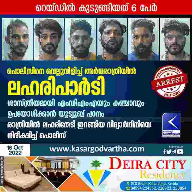 Keywords: Payyannur, Kerala, News, Top-Headlines, Arrest, MDMA, Drugs, Youth, Police, Raid, Drugs party at midnight; 6 arrested.