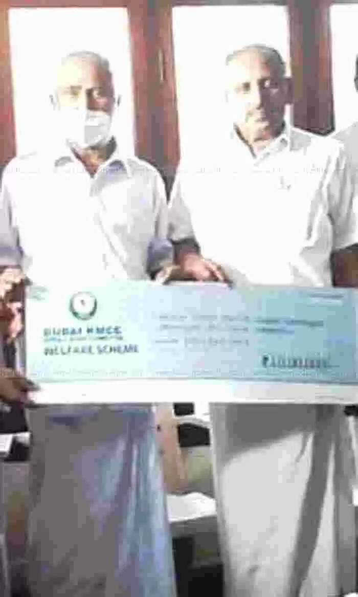 സാമൂഹ ബാധ്യതയും, കുടുംബ ഭദ്രതയും ഉറപ്പു വരുത്താൻ ദുബൈ കെഎംസിസി വെൽഫെയർ സ്കീം; പത്ത് ലക്ഷം രൂപയുടെ ചെക് കൈമാറി