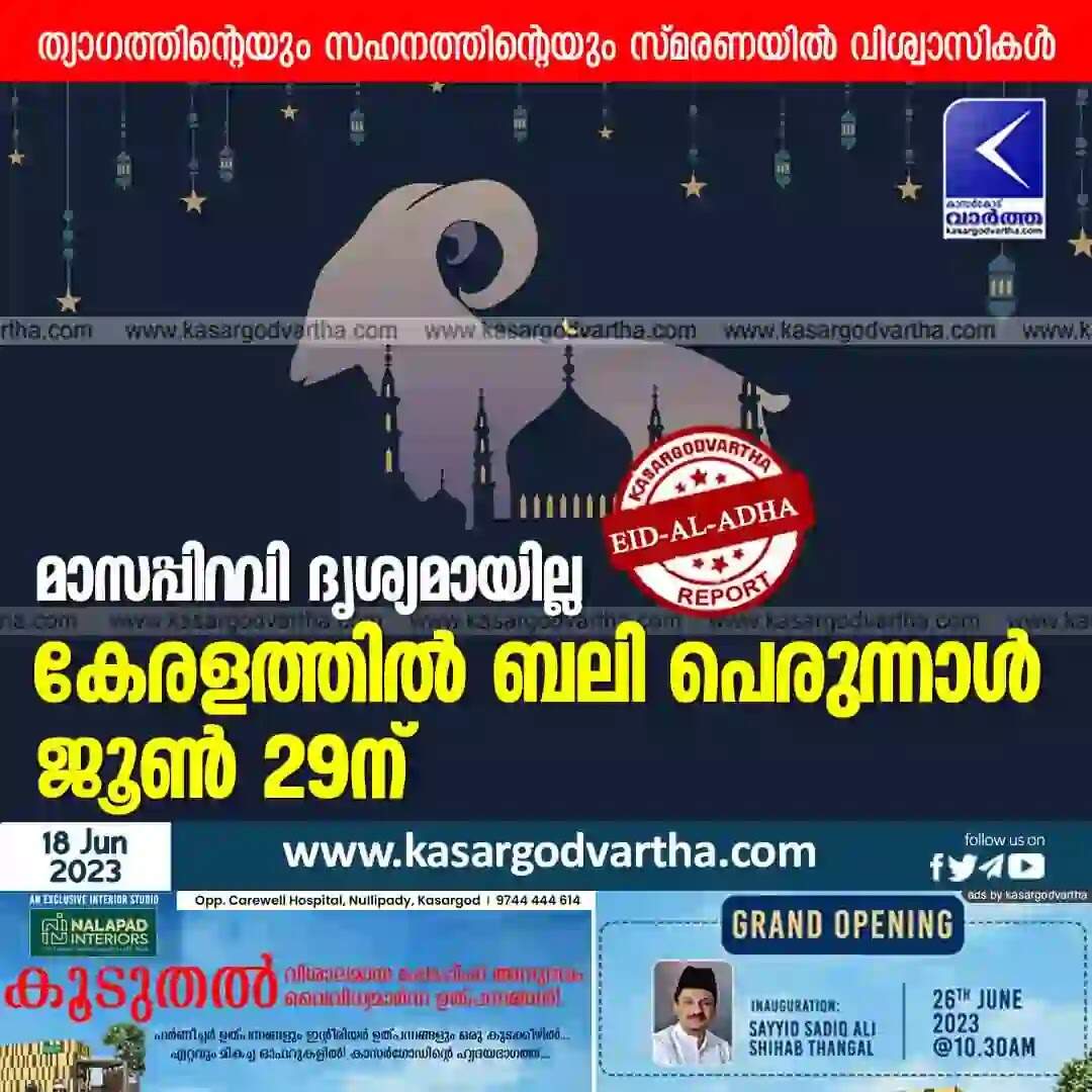Eid al-Adha | മാസപ്പിറവി ദൃശ്യമായില്ല; കേരളത്തില് ബലി പെരുന്നാള് ജൂണ് 29ന്