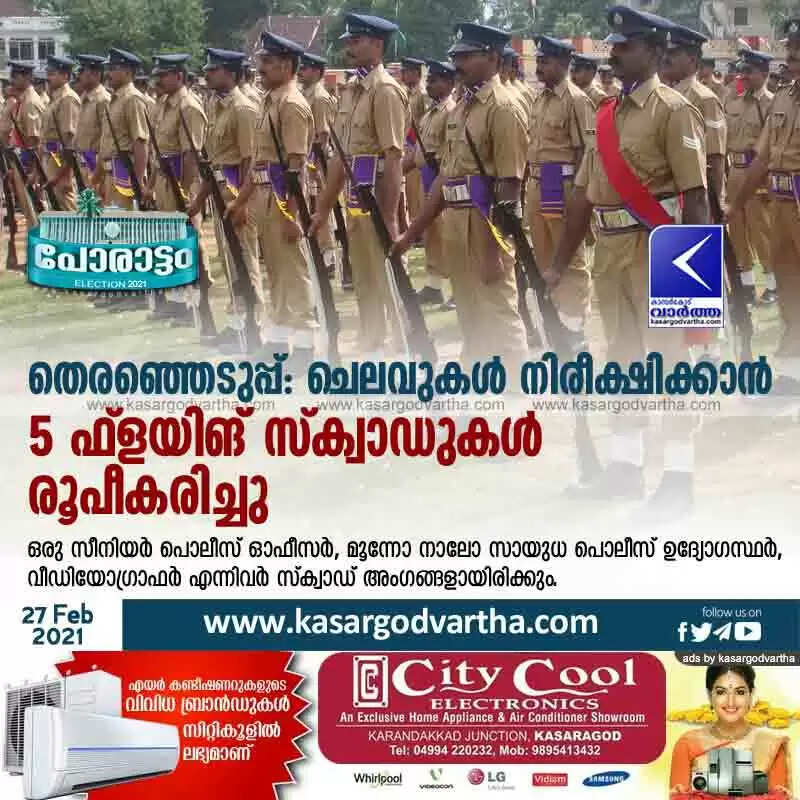 Keywords: Kasaragod, Kerala, News, Election, Niyamasabha-Election-2021, District, Special-squad, Police, Manjeshwaram, Udma, Kanhangad, Trikaripur, Collectorate, Election: 5 Flying Squads formed to monitor expenses.
