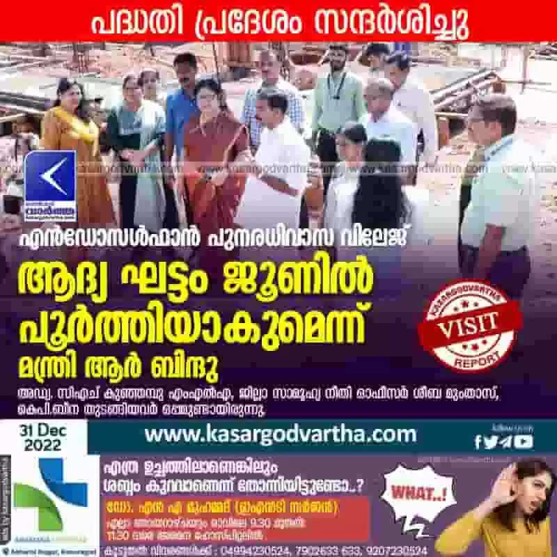 Keywords: Latest-News, Kerala, Kasaragod, Top-Headlines, Muliyar, Endosulfan, Visit, Endosulfan Rehabilitation Village: First phase to be completed by June, says Minister R Bindu.