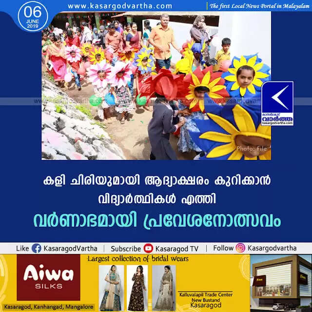 കാസര്‍കോട്: (www.kasargodvartha.com 06.06.2019) അറിവിന്റെ ആദ്യാക്ഷരം കുറിക്കാന്‍ കളി ചിരിയുമായി വിദ്യാര്‍ത്ഥികള്‍ ജില്ലയിലെ വിവിധ വിദ്യാലയങ്ങളില്‍ എത്തി. മധ്യവേനല്‍ അവധിക്കഴിഞ്ഞ് പുതിയ അധ്യയനവര്‍ഷത്തിലേക്ക് കടന്നവന്ന വിദ്യാര്‍ഥികളെ വരവേല്‍ക്കാന്‍ വിപുലമായ പരിപാടികളാണ് ജില്ലാതലത്തിലും ഉപജില്ലാതലത്തിലും സംഘടിപ്പിച്ചത്. പ്രവേശനോത്സവത്തിന്റെ ജില്ലാതല ഉദ്ഘാടനം രാവിലെ 10ന് ബന്തടുക്ക ജി.എച്ച്.എസ്.എസില്‍ കെ. കുഞ്ഞിരാമന്‍ എം.എല്‍.എ നിര്‍വഹിച്ചു.