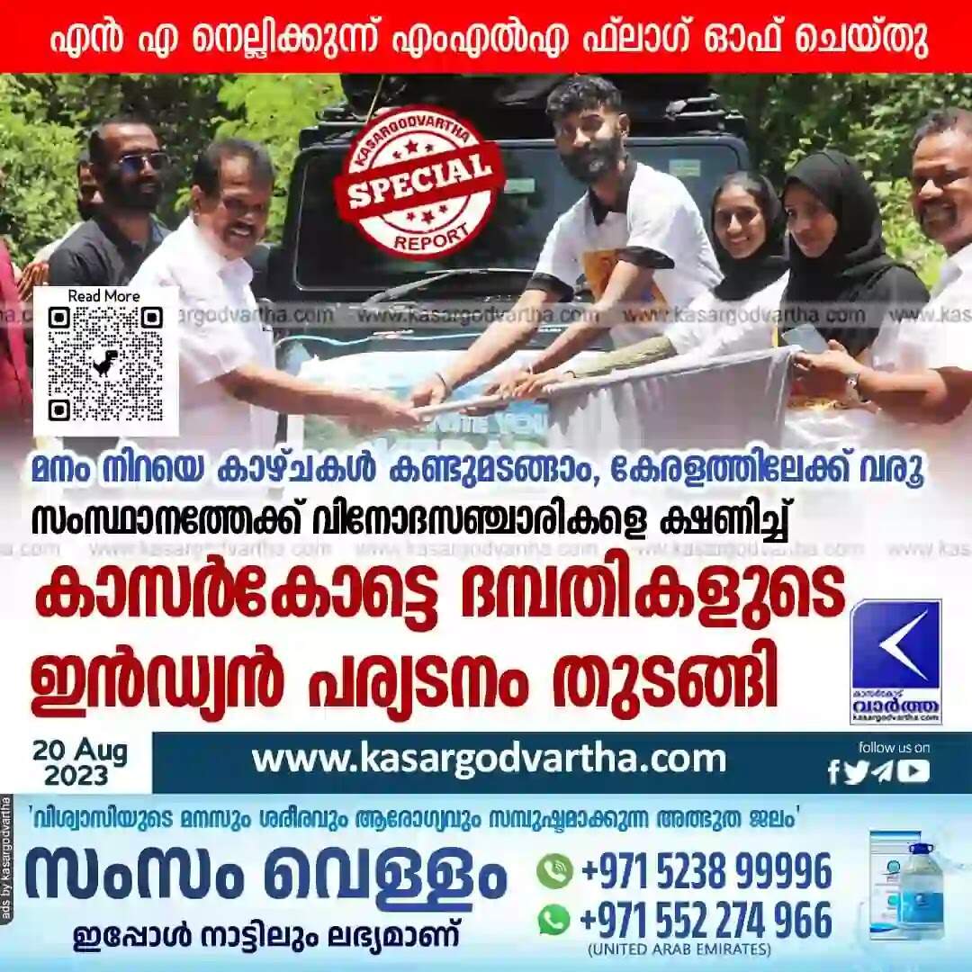 Travel | മനം നിറയെ കാഴ്ചകള് കണ്ടുമടങ്ങാം, കേരളത്തിലേക്ക് വരൂ; സംസ്ഥാനത്തേക്ക് വിനോദസഞ്ചാരികളെ ക്ഷണിച്ച് കാസര്കോട്ടെ ദമ്പതികളുടെ ഇന്ഡ്യന് പര്യടനം തുടങ്ങി; എന് എ നെല്ലിക്കുന്ന് എംഎല്എ യാത്ര ഫ്ലാഗ് ഓഫ് ചെയ്തു