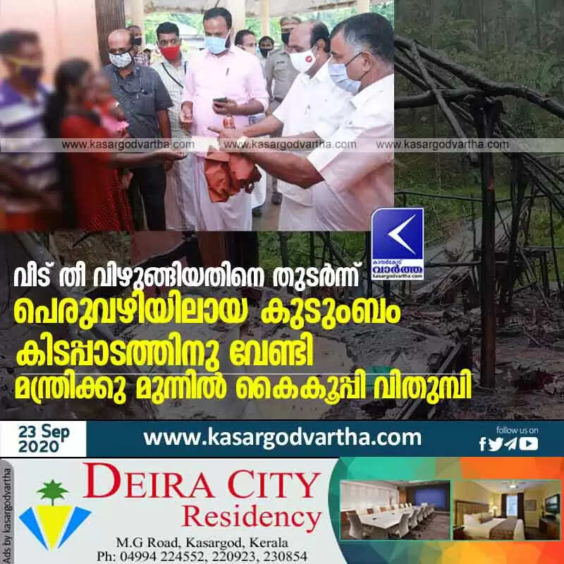 വീട് തീ വിഴുങ്ങിയതിനെ തുടർന്ന് പെരുവഴിയിലായ കുടുംബം കിടപ്പാടത്തിനു വേണ്ടി മന്ത്രിക്കു മുന്നിൽ കൈകൂപ്പി വിതുമ്പി