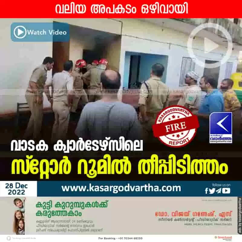 Keywords:  Fire broke out in the store room of rented quarters, Kerala, Kasaragod, Thalangara, news,fire force,fire.