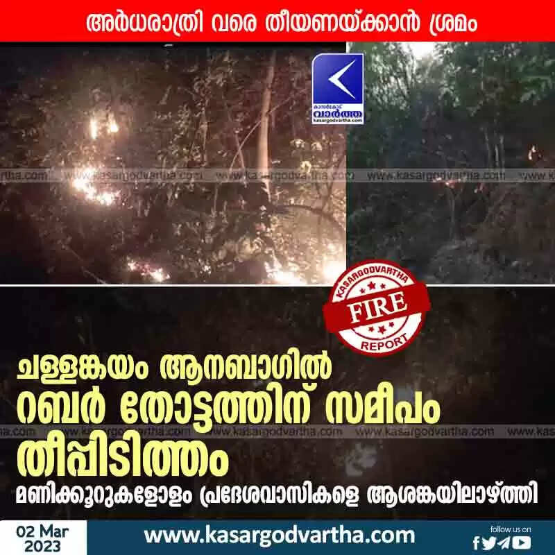 Fire | ചള്ളങ്കയം ആനബാഗിൽ റബർ തോട്ടത്തിന് സമീപം തീപ്പിടിത്തം; മണിക്കൂറുകളോളം പ്രദേശവാസികളെ ആശങ്കയിലാഴ്ത്തി