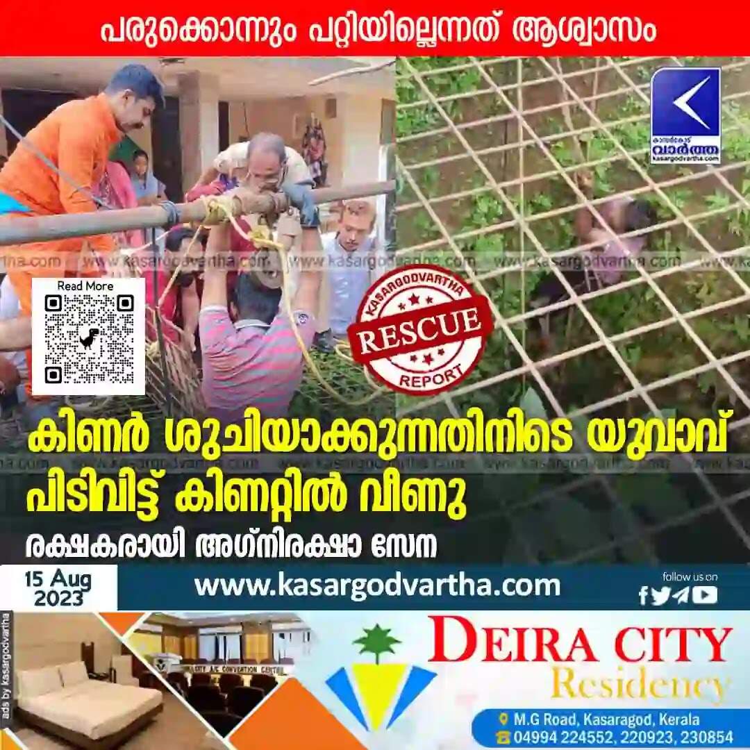 Keywords: Fire Force, Rescues, Ananagoor, Kerala News, Malayalam News, Kasaragod News, Fire force rescues youth who fell down well.