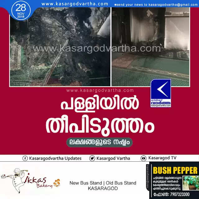 Keywords:  Kasaragod, Kerala, news, Adkathbail, fire, Fire in Masjid at Adkathbail