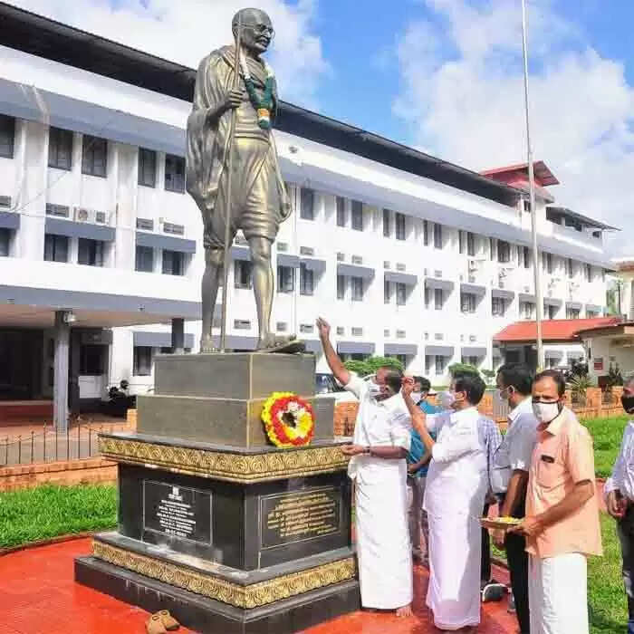 കാസർകോട്: (www.kasargodvartha.com 02.10.2020) ഗാന്ധിജയന്തി നാടെങ്ങും ആലോഷിച്ചു. ഗാന്ധി ജയന്തി ദിനത്തിൽ വിദ്യാനഗർ കലക്ടറേറ്റിന് മുന്നിലെ ഗാന്ധി പ്രതിമയിൽ രാജ് മോഹൻ ഉണ്ണിത്താൻ എം.പി പുഷ്പാർച്ചന നടത്തി.