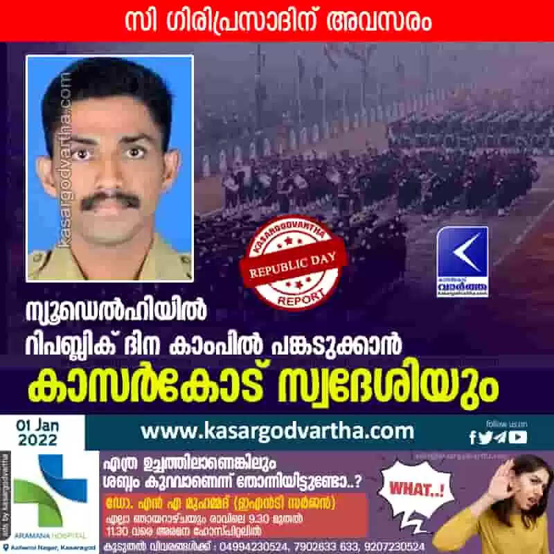 Republic Day | ന്യൂഡെൽഹിയിൽ റിപബ്ലിക് ദിന കാംപിൽ പങ്കടുക്കാൻ കാസർകോട് സ്വദേശിയും; സി ഗിരിപ്രസാദിന് അവസരം