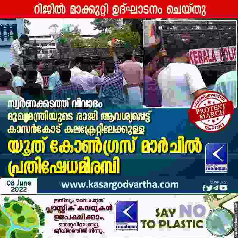 Keywords: Kasaragod, Kerala, News, Top-Headlines, Youth-congress, Minister, Pinarayi-Vijayan, Protest, March, Police, Collectorate, President, State, Gold smuggling controversy: Youth Congress held protest march.