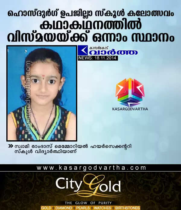 ഹൊസ്ദുര്‍ഗ് ഉപജില്ലാ സ്‌കൂള്‍ കലോത്സവം: കഥാകഥനത്തില്‍ വിസ്മയയ്ക്ക് ഒന്നാം സ്ഥാനം