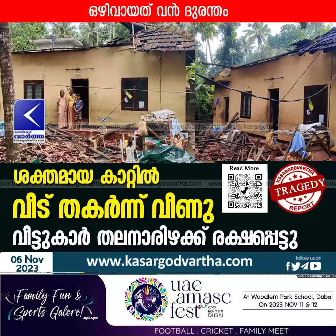 Keywords:  News, Top-Headlines, News-Malayalam, Kasaragod,Kasaragod-New,Kerala, Kalanad, Malayalam News, House damaged after wind