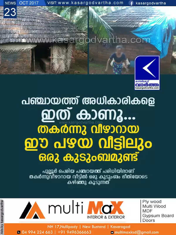 Keywords: Kasaragod, Kerala, news, Pullur, House, Panchayath, House in bad condition; Family in trouble